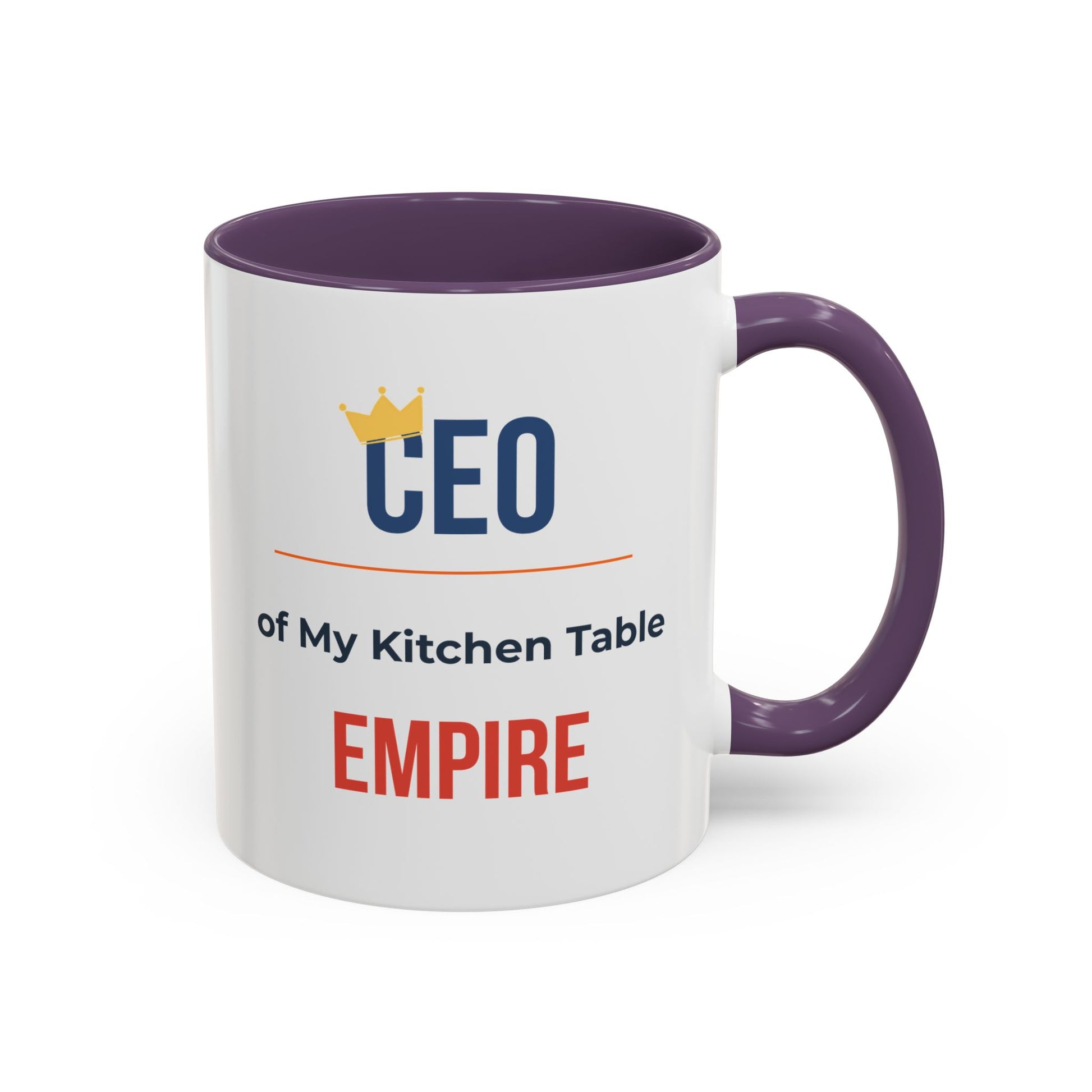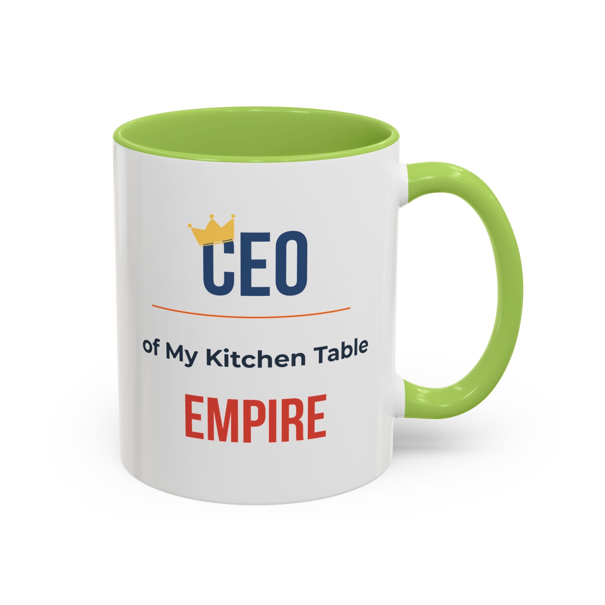 There’s a quiet, proud energy in the small rituals of home: the first sip of morning coffee, the meeting notes scribbled at the kitchen table, the steady hum of life being built one day at a time. This ceramic mug wears its message with a wink — a bold “CEO” crowned with a tiny gold emblem and the line “of My Kitchen Table EMPIRE” beneath. It’s made for the person who runs their life from a cozy corner, balancing creativity, hustle, and a sense of humor. The glossy contrast of the colored interior and handle frames the clean white canvas artwork, so your declaration stands out whether you’re dialing into a morning call or savoring a slow weekend brew. Durable, bright, and machine-friendly, it moves easily between microwave reheats and dishwasher cycles without losing its vibrant print. Let this mug be a small, steady reminder of the work you do and the life you’re building — celebrated in everyday moments.